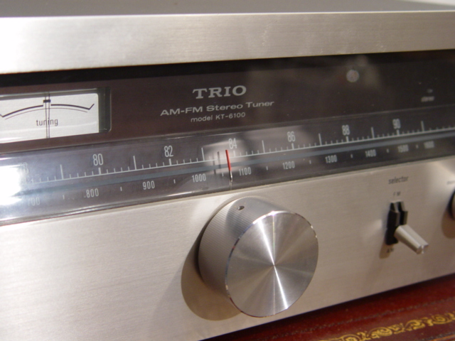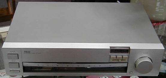 Our panelist Eric owned a KT-1000 for awhile and had no trouble disabling the servo lock, so Jim's sample apparently did have a problem, but anyone considering buying a KT-1000 should be careful because we don't know how common the problem is. But our contributor Greg likes his: "I have a KT-1000 that works really well. I still need to tweak it, so I may be writing about that when I get it done. It's a cool design that offers the center-tuning meter and IF bandwidth options for AM reception as well as for FM. Very unusual in a modern tuner. It's a slick machine with some other unusual features, too." The KT-1000 usually sells for $100-175 on eBay, but one went for just $61 in 1/11 and two crazed bidders ran one up to $255 in 7/13. Here's a nice photo of the Japanese version, the Trio KT-1000.
