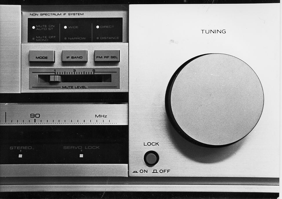 KT-3050 - Traditional tuning knob. In Auto mode, the tuner seeks the next higher or lower valid signal; in Manual mode, the tuner increments up or down one step size. Has a independent Mono button, so you can force mono for any reason. Very handy. Note: The tuner stays in this mode whether tuned via Auto or Manual.