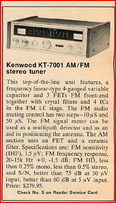 Kenwood KT-7001 (1971, $310/orig $280, photo, ad)