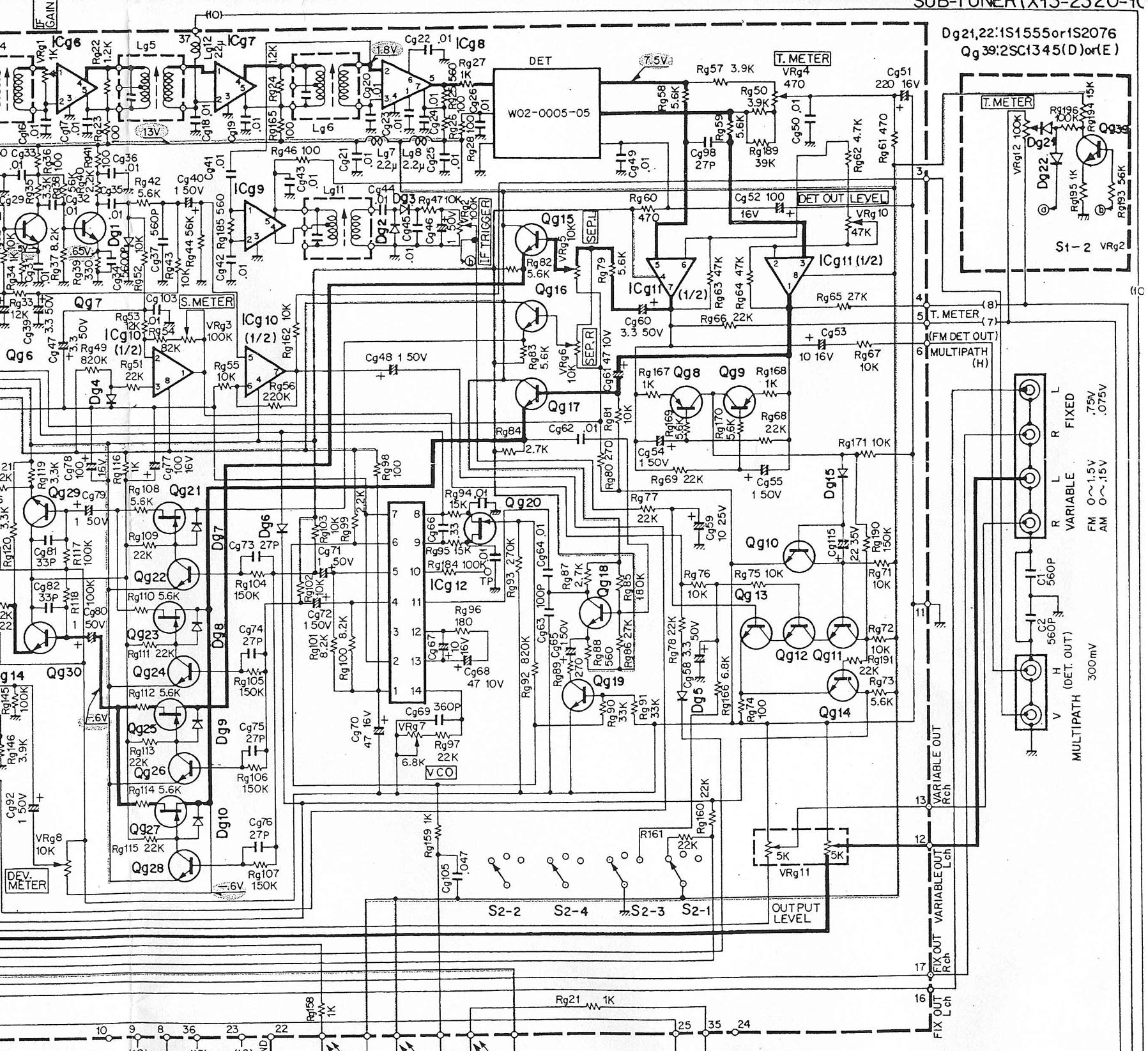 Kenwood KT-990D (1988, $375, detector/MPX scheme: PLL detector, "Direct Pure" linear multiplying circuit with MC 1495L) search eBay