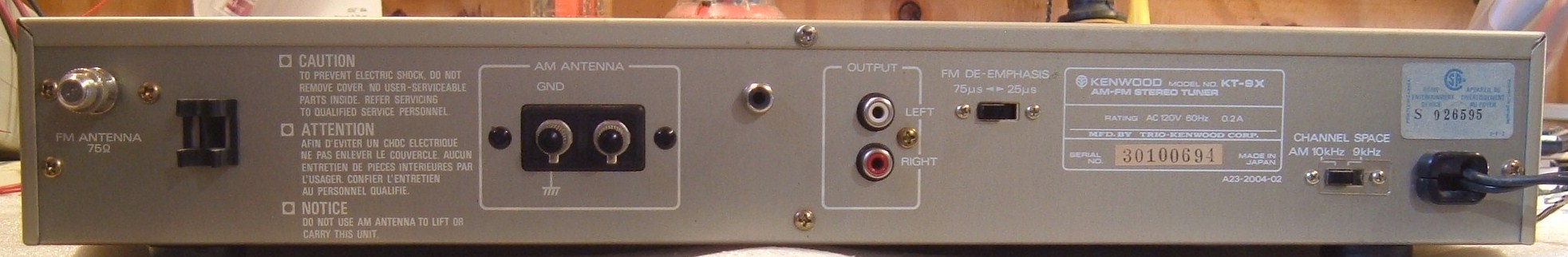 Here's our panelist Ray's review of this scarce tuner, which can be found with a silver front panel or a gold one: "The KT-9X is an early Kenwood digital tuner. Circa 1981, it seems to fit between the end of Kenwood's analog thoroughbreds of the 1970s and their mass-market mediocrity of the mid-1980s and beyond. (RFM's opinion.) Fortunately, the KT-9X's bloodlines are much closer to the former than the latter.