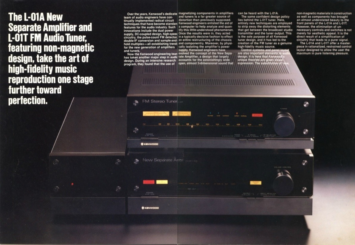 Kenwood L-01T (1980, photo, ad, block diagram, specs and manual page, detailed specs)