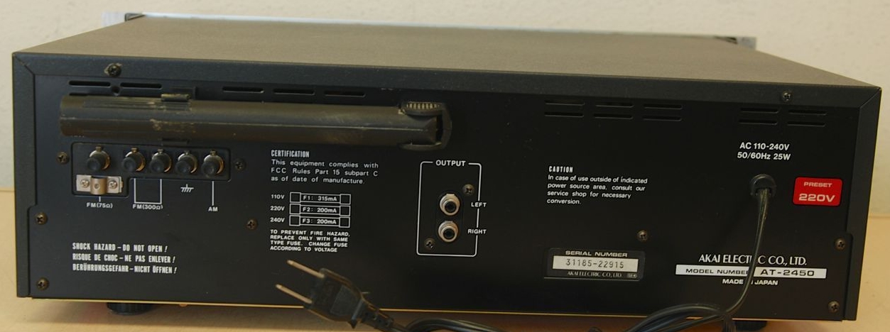 Akai AT-2450 (1979, $325, silver 1, 2, black, rack, U.S. back, Euro back, inside) search eBay mostly under 50, low 10 4/06