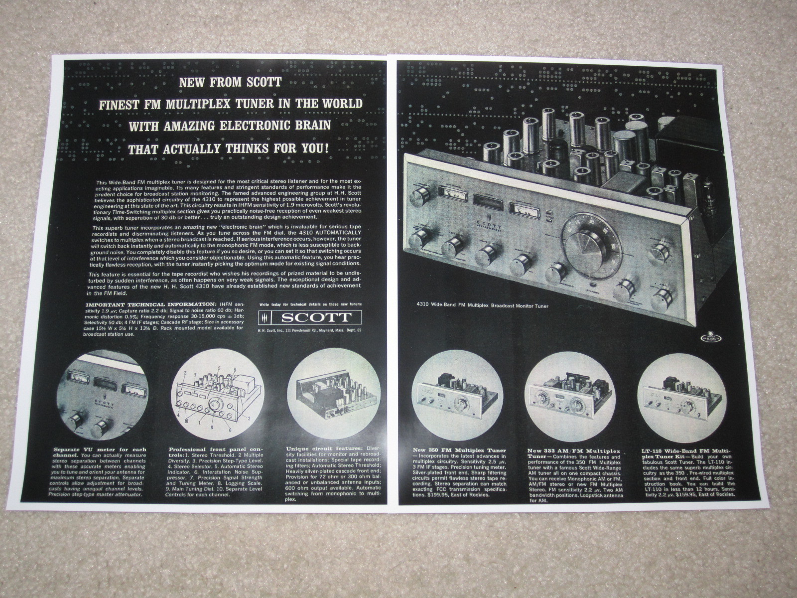 Scott's tube tuners were almost all the 3XX series, with popular models like the 310A/B/C/D/E and 350A/B/C. The exception was their kits, which had LT in the model number - like LT-10, LT-110 and LT-111. The LT-111 was the kit version of the 370. For more information on Scott tuners, Lee Shuster's H.H. Scott website and John Byrns's site are "must-reads." Here's something to make you say "wow": A Scott 4310 sold for $2,582 on eBay in 5/05.