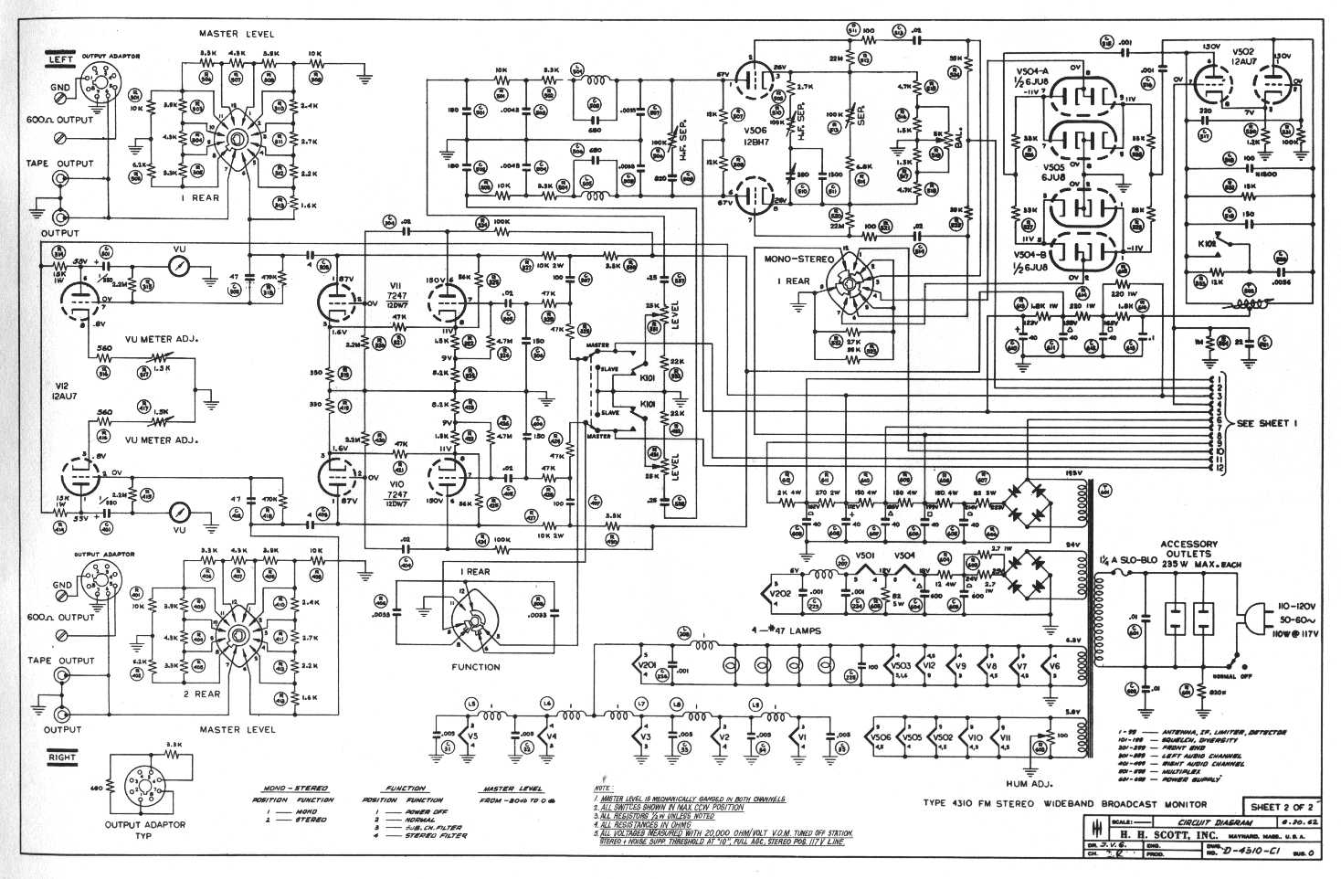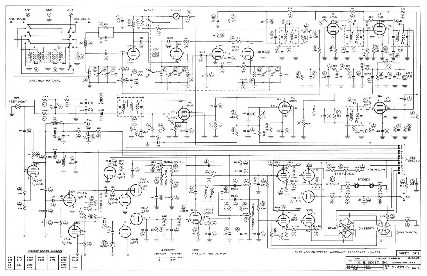 John Byrns comments, "The Scott 310E uses the same RF, IF, and detector circuits as the 4310, but uses a completely different FM stereo multiplex decoder of a later more refined design than the one used in the 4310. The different multiplex decoder designs may affect the relative sonics of the two tuners. The 310E multiplex decoder was the pinnacle of Scott multiplex decoder design, and later Scott tube tuners and receivers used multiplex circuits that were cost optimized."