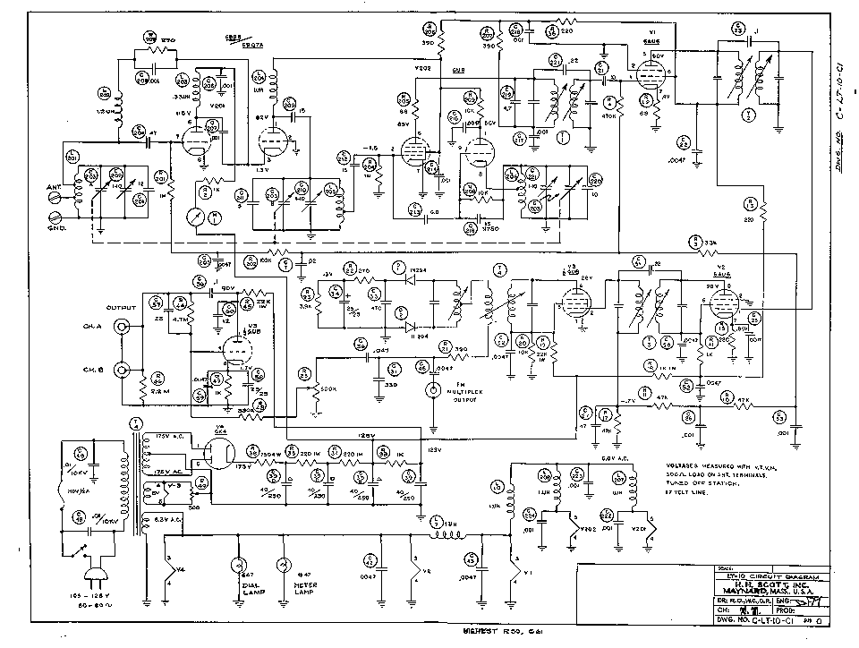"As far as performance differences between the LT-110 and the 350-D, I haven't had any personal experience with the 350-D, but I would expect that the difference was insignificant as far as RF performance goes. I could never tell the difference performance-wise between the LT-10 and the 310-D even though the 310-D had an extra IF filter and two more tubes in the IF/limiter stages. Theory says the 310-D should have a little more selectivity, but the LT-10 was equally sensitive in my experience. The 310-D did have some extra bells and whistles, though, including a squelch circuit. There could be a difference in the sound quality of the LT-110 vs. the 350-D due to the considerable differences in the multiplex circuits the two tuners use, but as I said I have no experience with the 350-D so I don't know one way or the other. I do prefer the sound of the multiplex circuit in the 310-E to that of the 350(B,C), but the 310-E multiplex is a more sophisticated multiplex decoder design than either the 350(B,C) or the 350-D design. My ideal Scott tuner would be an LT-10 with the 310-E multiplex circuit in it. The 350-D seems to be a somewhat rare tuner, I assume because the 312 came out about the same time as the 350-D, so why would anyone buy an old technology tuner like the 350-D when they could have a nice modern transistorized 312, unless saving a few dollars was important."